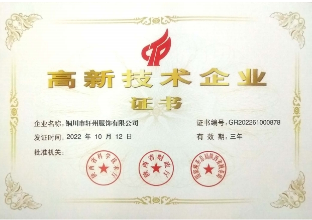 高新技術(shù)企業(yè)證書(shū)